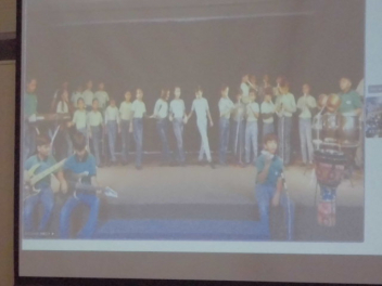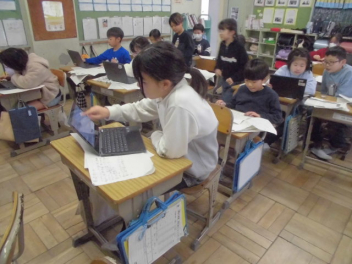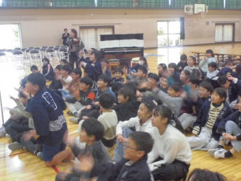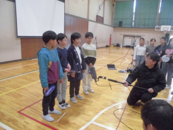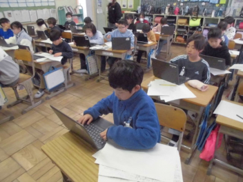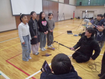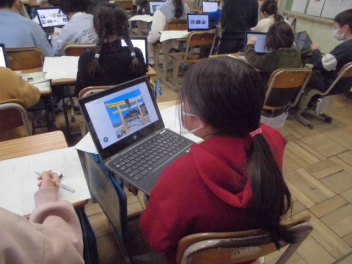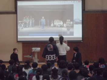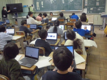 インドのアーメダバード市にある「ディバイン・チャイルド・インターナショナルスクール」と、城北小の5年生が、インターネットを利用して音楽交流授業を行いました。(株)ヤマハさんからの提案とご協力により実現しました。5年生はこれまで、(株)ヤマハのみなさんと一緒にインドの文化や音楽などについてたくさん学んできました。学びを通して、インドの文化をもっと知りたいという意欲と共に、インドの文化や人たちを尊重する気持ちも大きくなりました。今日は、自分たちの学校生活の様子や浜松市のよさを、英語を使いながら堂々と紹介しました。また、日本の音楽や浜松まつりについて、実演しながらその素晴らしさを伝えました。