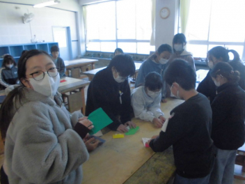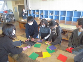 • 城北小学校は、地域に支えられている学校です。今年度も、たくさんの「城北サポーター」の皆様が、ボランティアとして様々な場面で子供たちの学習や活動を助けてくださいました。支えてくださる皆様へ、城北全員で感謝の気持ちを届けたいという思いから、運営委員会の子供たちが中心となって「感謝の会」を計画しています。今日は、その会でお渡しするプレゼントを作成している場をのぞいてみました。