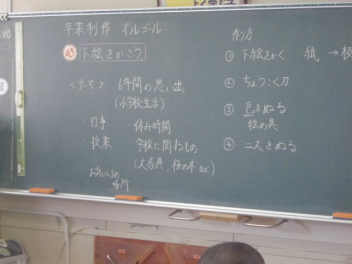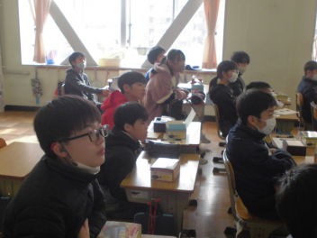 6年生が「卒業制作」に入ります。いよいよ、「卒業」というキーワードが出てきました。オルゴールを制作するのですが、今日はその導入として、動画で作り方を確認していました。真剣に見ている姿から、「頑張って作るぞ!」という気合いを感じました。