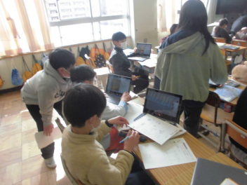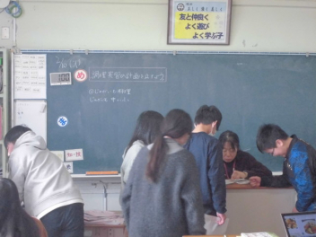 家庭科では、調理実習の計画を立てていました。じゃがいもを使った料理です。材料や手順、完成イメージ等、綿密な計画でした。小学校の家庭科では最後の調理実習になるのかな。楽しみですね。