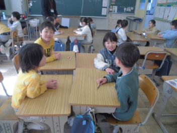 生活科「明日へジャンプ」では、自分が成長したと思うことを、友達と伝え合いました。自分をしっかりと振り返り、少し照れながらも、楽しそうに伝え合っている姿がとても印象的でした。