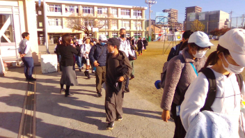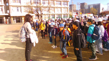 「人がたくさんいて、建物がたくさんある東京の中で、蒲小学校のように大勢の人数がいて、時間を守り落ち着いて行動できたみなさんのことを誇りに思います。」