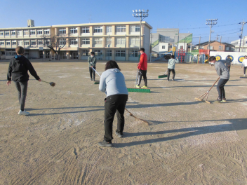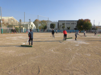 これからの季節、乾燥して砂埃が舞わないように、1週間ほど前に職員作業で防塵剤をまきました