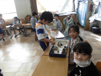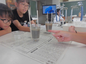 同じく4年生『雨水のゆくえ』の学習では、「水のしみこみ実験器」を使って、水のしみこみ方について観察しました