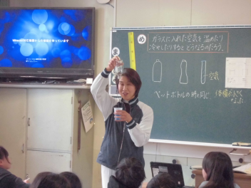 膨らみ(体積が増え)、冷やすと縮む(体積が減る)ことを実験で学びました。実験で自ら経験し、自分の目で確認するということは、とても大切なことです