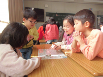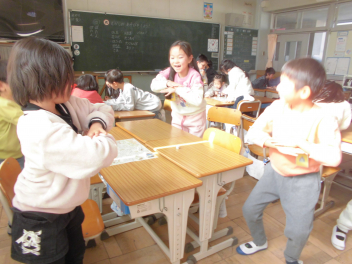 教室をのぞくと、白玉を頬張りながら、にこにこと笑顔で食べている姿がとても印象的でした