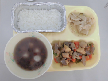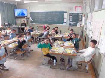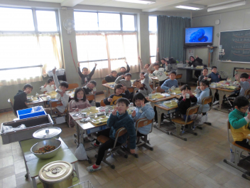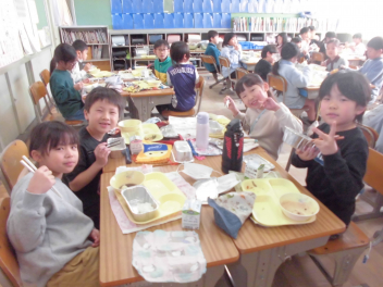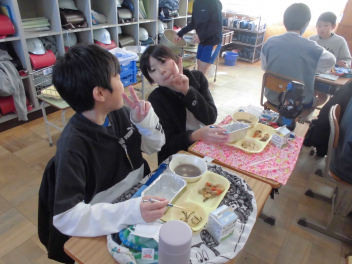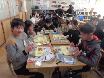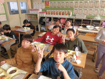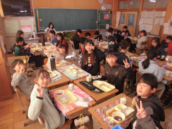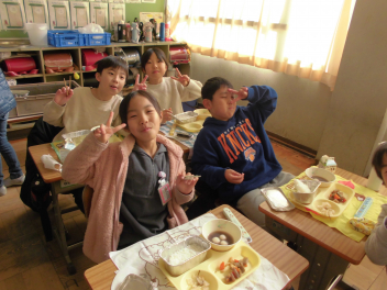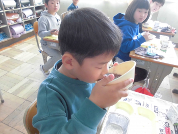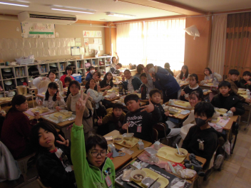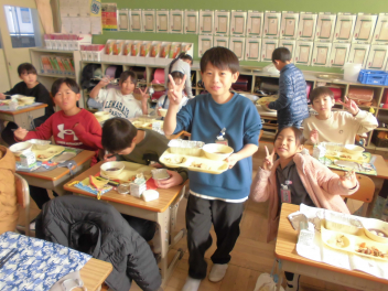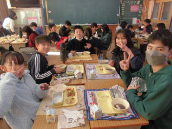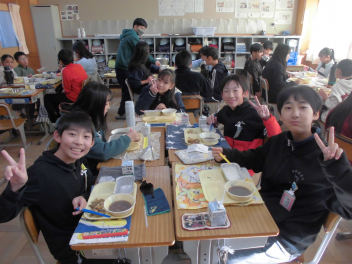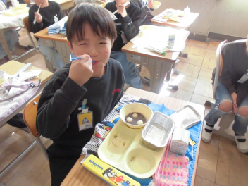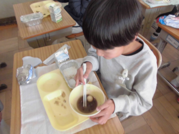 蒲小学校では、「鏡開き」が日曜日でお休みということもあり、一足お先に9日の金曜日の給食に「おしるこ」が登場しました