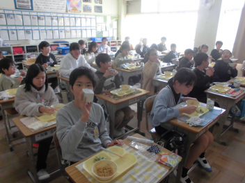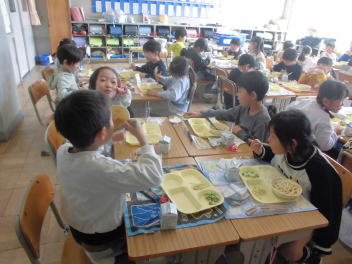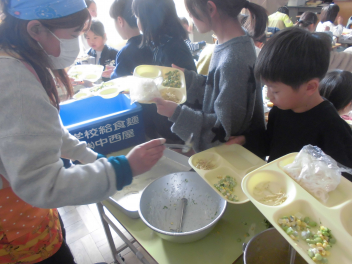 残念ながら、子どもたちが夢中で食べている様子の写真は撮り逃してしまいましたが、教室からは「おいしい!」という声が聞こえてきました。 明日もどんなメニューが登場するか、楽しみですね