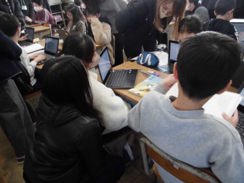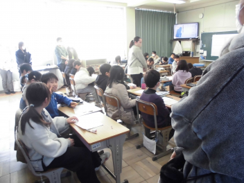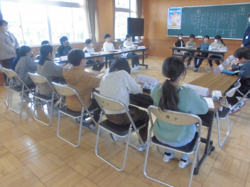 話し合いの時間には、近くの友だちと活発に意見を交換。