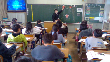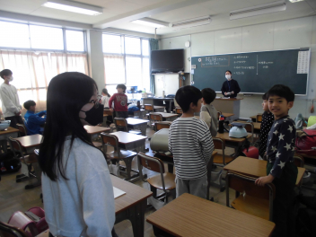 教卓の前に立つのは、担任の先生ではありません。
