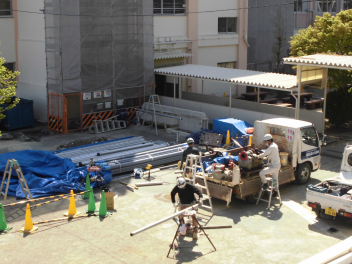 安全な御来校を!… 校内には足場が組まれている箇所や、作業車両が通行する場所がございます。来校される際は、周囲の安全に十分お気をつけてお越しください。