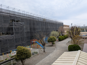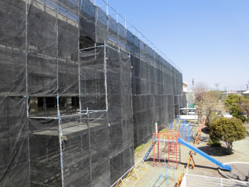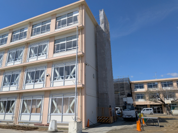 春休み中も作業が進められており、校舎の周りには足場が組まれるなど、普段とは異なる様子に驚かれた方もいらっしゃるかもしれません。この工事は、本年度の12月頃まで続く予定です。