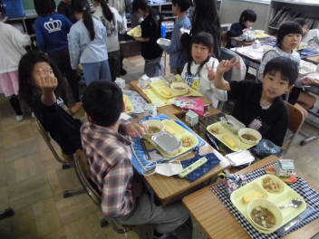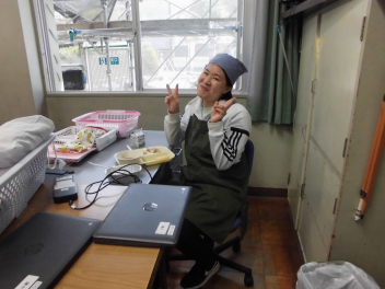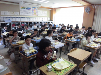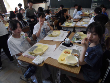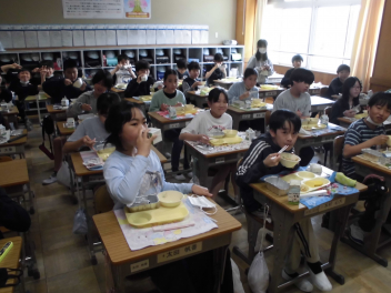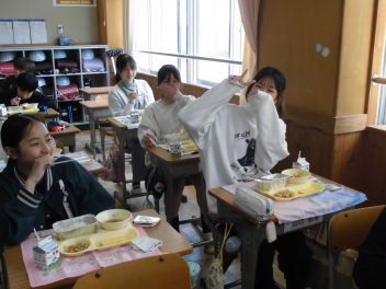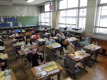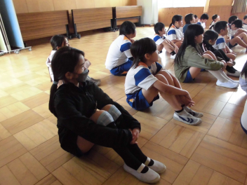 体育館では、「反復横跳び」と「上体起こし]が行われていました。