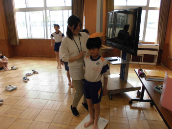本日、5年生が体育館で「新体力テスト」に臨みました
