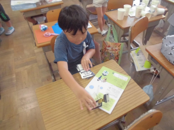 生活科の教科書を見たり、図書館の本で調べたりしながら、みんなで楽しめるおもちゃを考えていました。