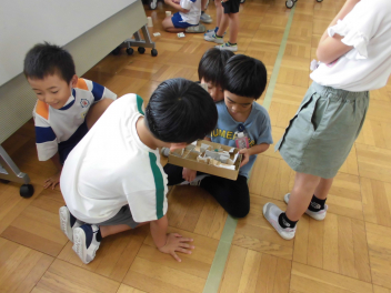 生活科「うごくおもちゃをつくろう」の学習に真剣に取り組んでいます