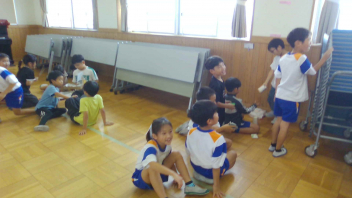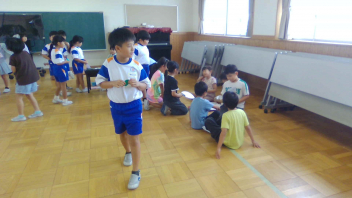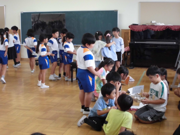 • 給食終了後、校長室に運動委員会のメンバーが集まってきました。