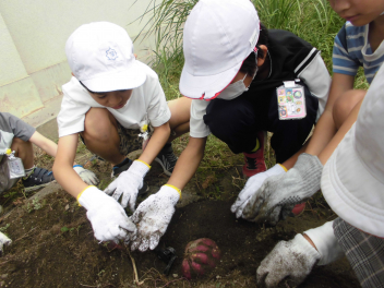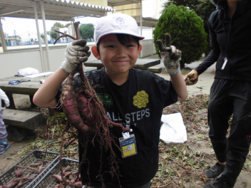 つるをとった翌日!いよいよさつまいもの収獲「芋ほり」ですwink