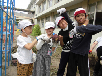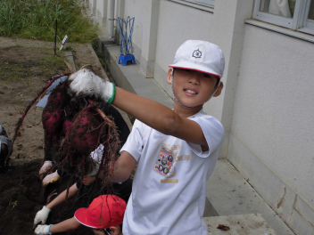 蒲小学校では、学習や生活で多くの「実りの秋」が見られていますが、なかよし学級では、さつまいもの収獲をとおして「収穫の秋」そして「学びの秋」を実感しています