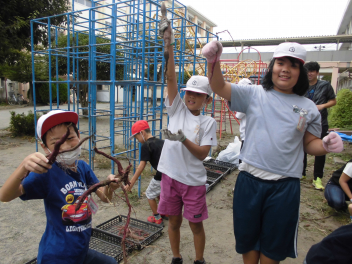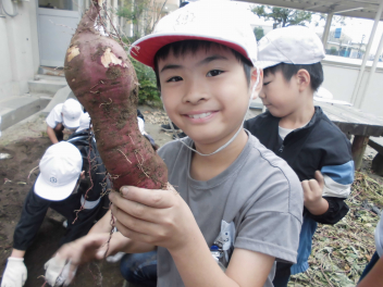さつまいものつるは、長くてしっかりとしています。あまりもの長さに子供たちは「長~い!」「重~い!」とびっくりしながらも、作業を進めましたsad