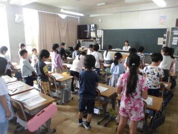 子供たちは緊張の面持ちで、校長先生の話を聞いています