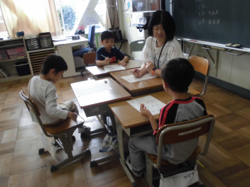 一人で黙々と取り組む子もいれば、友達に相談してアドバイスをもらいながら取り組む子もいます。