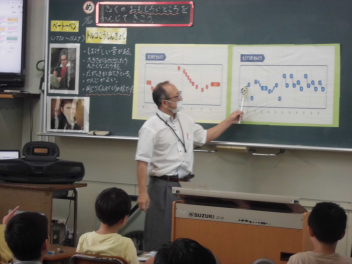 校長先生からは、学校全体のために楽しいイベントを開催してくれた運動委員会に対してねぎらいと感謝の言葉が伝えられました。また、運動委員がやってきたことが学校教育目標『 咲かそう 蒲桜 』にどのようにつながっているか、グランドデザインを示しながら、説明もしてくださいましたfrown