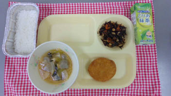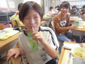 今日の給食には、浜松市の特産品である「お茶(緑茶)」も取り入れられました。