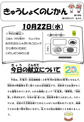 そう、今日は天竜川・浜名湖地域12市町村の合併20周年という記念すべき日を祝う、特別な献立でした!