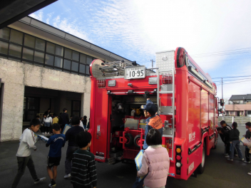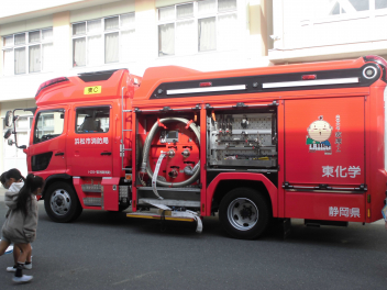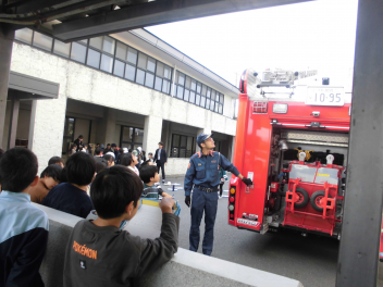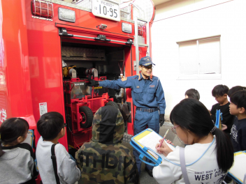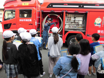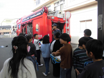 「スクール119」は、消防署の方に来ていただき、消防の仕事や車両の工夫などを学ぶ特別授業です。