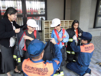 「重たい!」「こんな服を着て火を消しているんだ!」と驚きの声がたくさん上がりました。