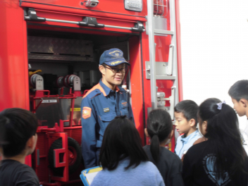 はじめに、消防士さんから消防士の仕事ついてお話を聞きました。