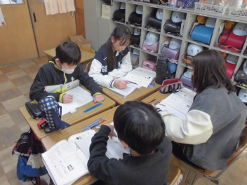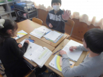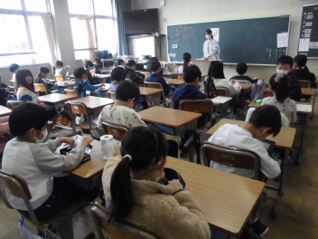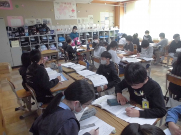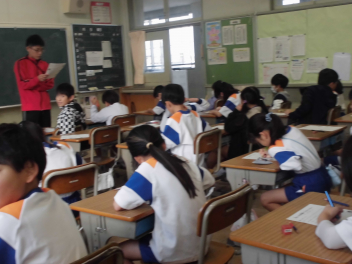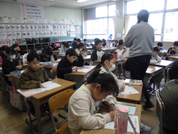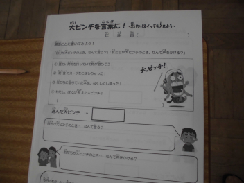 朝の活動は、「思いやりの心をもとう」ということで、それぞれのクラスで、ワークシートをもとに、「大ピンチを言葉に!思いやりスイッチを入れよう」というワークを行いました