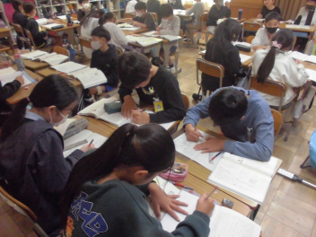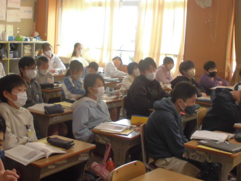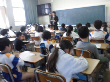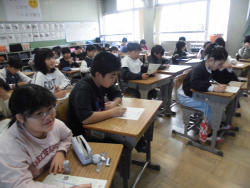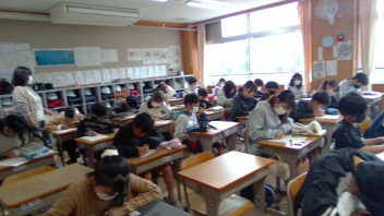 養護教諭や認め合い担当教諭から放送で話を聞き、その後、各学級では担任の説話からワークシートへの記入をしました。