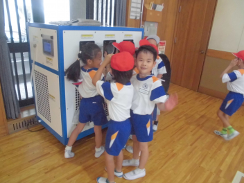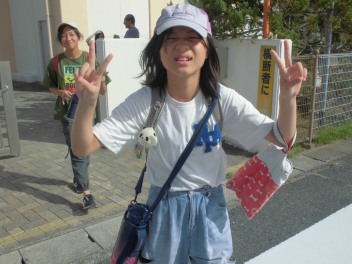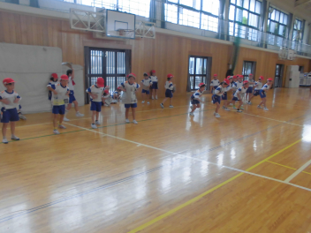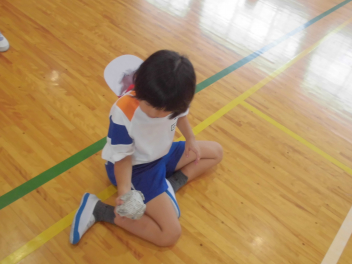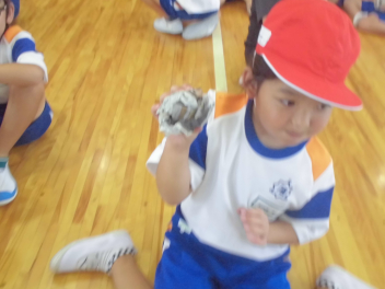 これは、握る力を鍛える運動になります。1年生の子供たちは、「もっと小さくしよう!」と何度も何度も握りなおします