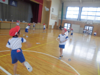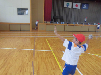 そして、最後に自分で作った新聞紙ボールを思い切り投げます