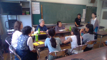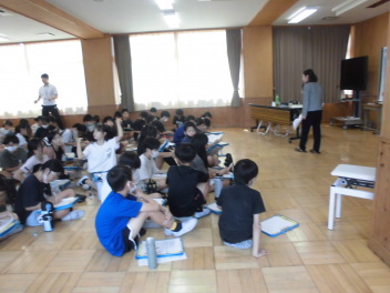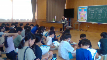 6年生は夏休みの振り返りシートを共有して、グループで話し合いをしていました