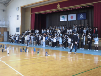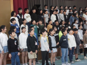 校長先生からは、学校全体のために楽しいイベントを開催してくれた運動委員会に対してねぎらいと感謝の言葉が伝えられました。また、運動委員がやってきたことが学校教育目標『 咲かそう 蒲桜 』にどのようにつながっているか、グランドデザインを示しながら、説明もしてくださいました