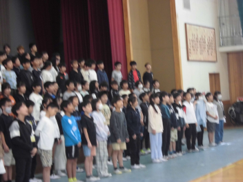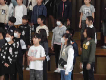 子供たちは緊張の面持ちで、校長先生の話を聞いています