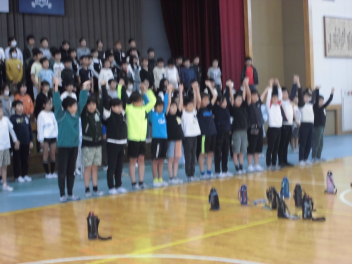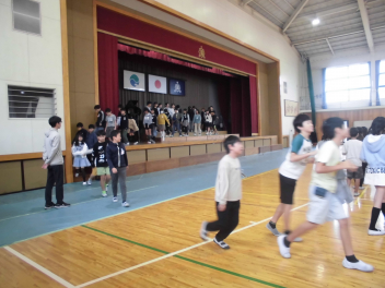 給食終了後、校長室に運動委員会のメンバーが集まってきました。