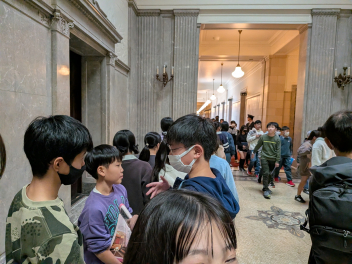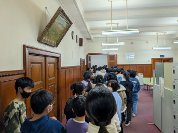 吹き抜けの『中央広間』の豪華さと高さ!そして、広間に立つ伊藤博文、大隈重信、板垣退助の大きな銅像を見ることができました。ゆっくりと話を聞くことができませんでしたが、この3人は日本の近代化と議会政治の確立に大きく貢献しました。詳しくは、もう少し後の社会の授業で一緒に学んでいきます