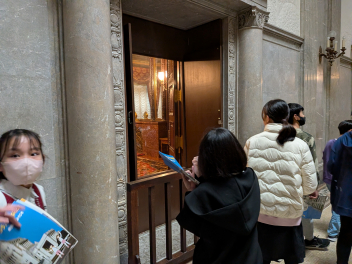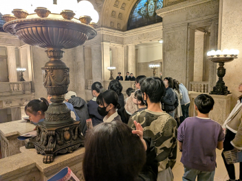 建物全体に使われている大理石の多さや、細部にわたる装飾の美しさにも驚きの声が上がりました。日本全国から集められた石材が使われているという話を聞き、建物のスケールの大きさを改めて感じることができました。