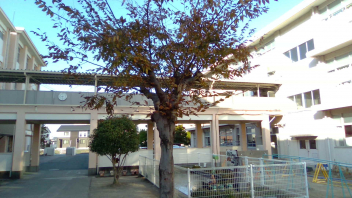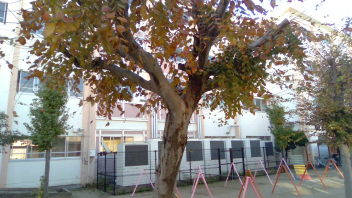 • 校庭の木々が美しく色づき、子供たちを温かく迎えています