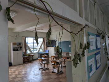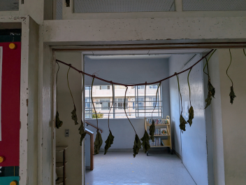 そうです!さつまいものつるを、教室の入り口ののれんにしていたわけです