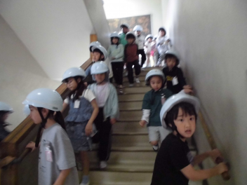 少し緊張した表情も見られましたが、先生の話をよく聞き、一生懸命に避難経路を歩くことができました。