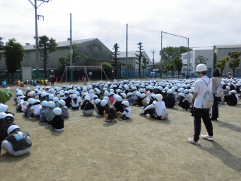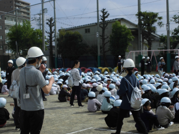 入学したばかりの1年生にとっては、小学校で初めての避難訓練。