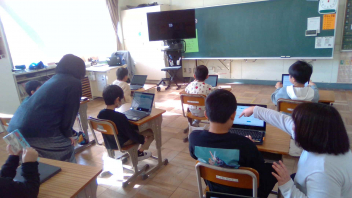 授業が始まると、教室中に元気な英語のあいさつが響き渡りました