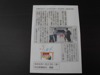 先日の起震車体験(6年生)の様子が、今朝の朝刊に掲載されました。