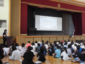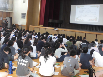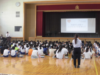 初めに、スクールカウンセラーの方からのメッセージが伝えられました。強くしなやかに育つために「レジリエンス」を高めていくこと、相手の考えを聞くことや対話の大切さについても投げかけられました。