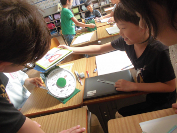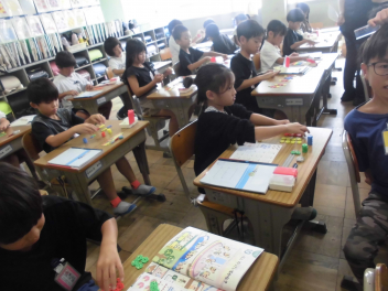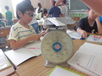 3年生の教室をのぞいてみると、算数の新しい単元「重さ」に取り組んでいました。